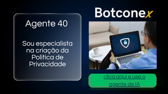 Ter uma Política de Privacidade bem estruturada não é apenas uma obrigação legal, mas também um sinal de credibilidade para seus clientes. Com o Agente de IA, da Botconex, você conta com um especialista em IA para criar textos claros, completos e alinhados com as normas de proteção de dados.